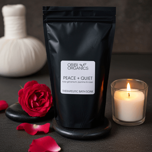 Unwind, detox, and rejuvenate with Oribi Organics PEACE + QUIET Therapeutic Bath Soaks — your all-natural escape to relaxation. Available in 250g and 500g sizes, these luxurious bath salts combine Himalayan Pink Salt and Magnesium Sulphate (Epsom Salts) to ease muscle tension and promote deep calm. Infused with Rose Geranium, Peppermint, and Rose essential oils, each soak transforms your bath into a soothing aromatherapy ritual that relieves stress, nourishes skin, and restores balance. Perfect for post-work relaxation or self-care Sundays, this sulphate-free, mineral-rich blend helps melt away fatigue naturally.