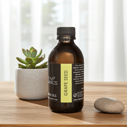 The ideal lightweight carrier oil! 🍇 Our organic, cold-pressed Grape Seed Oil is the perfect base for your massage and aromatherapy blends. Its lightweight, non-greasy texture absorbs easily, making it non-comedogenic and suitable for all skin types. Rich in Vitamin E, it supports skin health while providing excellent glide for massage. A neutral scent ensures it won't overpower your custom essential oil mixes.