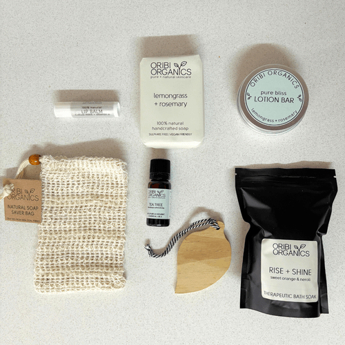 The perfect natural wellness indulgence! 🎁 The You Deserve Good Things Gift Box is a thoughtfully curated collection of handcrafted bath and body essentials—the ultimate self-care treat. This luxurious box includes: Pure Bliss Lotion Bar, Lemongrass + Rosemary Soap Bar, Soap Saver Bag, Cocoa-Mint Lip Balm, Rise + Shine Bath Soak, Organic Tea Tree Oil (10ml), and a Wooden Leaf Oil Diffuser. It’s a complete set for nourishing the body, mind, and spirit—perfect for any special occasion.